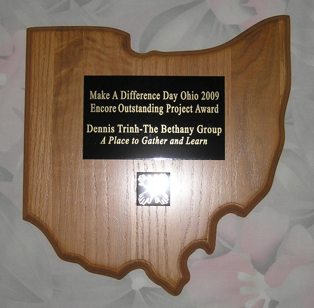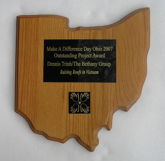 The Sixth Year (2007-08) At the annual meeting of the Bethany Group Veronica Burkel, Lydia Ewbank, and Erin Leventry resigned from the Board of Directors to attend college, and were replaced by Ericka Haverkos, Emily Jump and Tajana Schneiderman. The Board then elected Dennis Trinh as President for the 2007-08 term. Patrice Kirksey was elected as First Vice President, Ericka Haverkos as Vice President of Internal Affairs, Emily Jump as Vice President of External Affairs, David Trinh as Treasurer, and Tajana Schneiderman as Secretary. Albert Trinh, a co-founder of The Bethany Group decided to open a Bethany Group Chapter at the University of Dayton. Albert and his UD friends Joy Burch, Julio Fiallos, Pan Ho, Pete Kolis, Fuji Le, Drew Morrison, Bich-Vy Nguyen, Hong-Vy Nguyen, and Allen Yu performed music at three local nursing homes. Admirably, Dr. Jennifer Seitzer, Professor of Computer Science at UD, also joined her students to perform as a soprano and a pianist. There is also a young Bethany Group Chapter in the Mountain View/Los Altos area in California whose founding members are Ethan Goolish from Oak Elementary School, Jolie Goolish from Blach Middle School, Amy Tran and Michael Tran from Almond Elementary School, and Emily Tran from Los Altos High School. New members include Natalie Tran from Bullis Purissima Charter School, and Kathy Vo and Victor Vo from Campbell High School. . In Cincinnati, new members include Chase Coyle from Bethany Elementary School; Archer Amorosi from Mason Early Childhood Center, Anna Huang from Liberty Bible School; Mary Chamblin and Timothy Huang from Mason Heights Elementary School; Addison Amorosi, Ashton Cumble, Amanda Glover, Sarah Greensfelder, Jeffery Huang, Courtney Kappa, Katie Lipps, Michael Marino, Sean Patterson, Emily Schlimm, Olivia Small, Marti Sumrall, Ellen Stout, Arjun Venkatesh, Kaeleigh Warfield and Emma Zhao, all from Mason Middle School; Ashbey Amorosi and Brad Chamblin from Mason Intermediate School; Diana He, Shelby Laterza, Emily Pham, Linh-Thuy Vu, and Karen Zhang from Mason High School; Christina Lam from Lakota East High School; and Oliver Lam and Benjamin Leung from St. Xavier High School. Two seasoned members, Kevin Li and Tajana Schneiderman have decided to volunteer at Bethesda North Hospital.After several years of extensive effort, The Bethany Group was finally recognized at the state level for its participation in the National Make A Difference Day. The "Raising Roofs in Vietnam" project that supported the Jarai people in Vietnam was chosen to be one of the ten projects (out of over 1,000 Ohio NMADD projects) to receive the 2007 Outstanding Project Award from Mrs. Frances Strickland, the First Lady of Ohio. 2007 Make A Difference Day Ohio Award For more info about the Jarai Project please click here