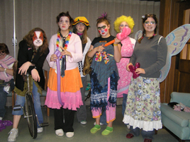 The Bethany Group Clown Troupe was conceived and organized by Emily Jump and Ericka Haverkos. Over the summer of 2005, several Bethany Group members, including Emily Jump, Ericka Haverkos, and Dennis Trinh, attended a clown camp to acquire the skills to be able to entertain nursing home residents. They also invite other participants of the clown camp to join them to perform for the residents. Their clown acts include skits, juggling, unicycling, magic, and balloon sculptures. Each show is usually ended with a party with circus animal crackers and punch. |